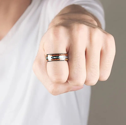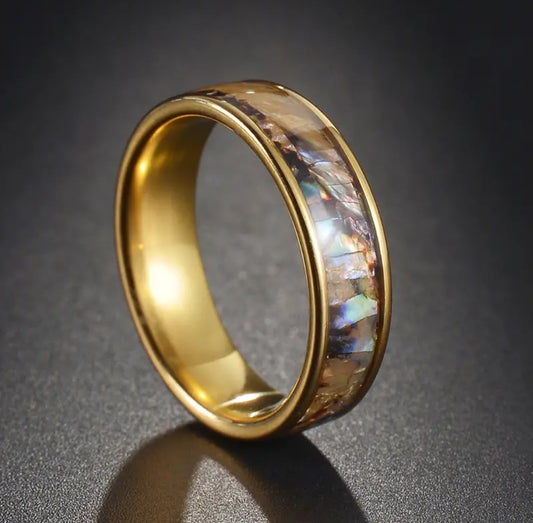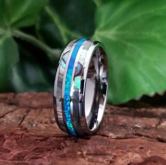 Tungsten steel rings with Shell, Opal and other unique inlays